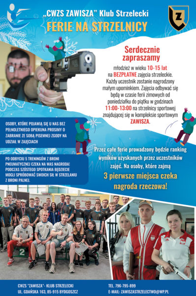 dni możecie wziąć udział w naszych feriach na strzelnicy!