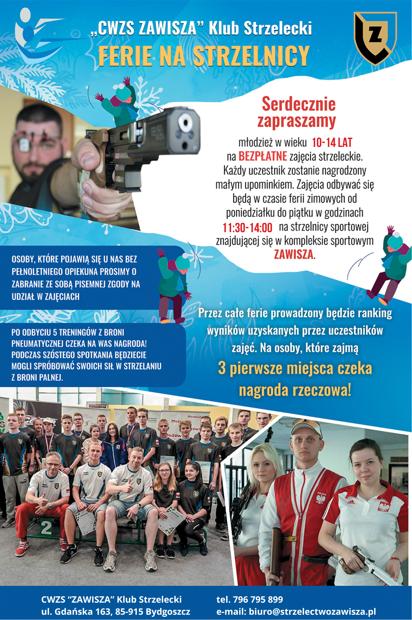 Serdecznie zapraszamy młodzież w wieku 10-14 lat na bezpłatne zajęcia na strzelnicy, które odbędą się w dniach 12-23 lutego! 🔫