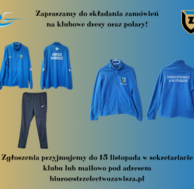 Zapraszamy do składania zamówień na dresy oraz polary klubowe. Zamówienia przyjmujemy do 15 listopada 2024r. Szczegóły pod adresem mailowym biuro@strzelectwozawisza.pl lub w sekretariacie klubu....