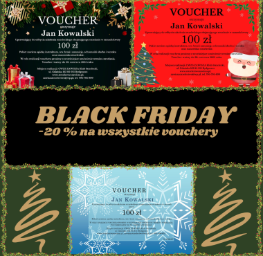 Black Friday i świąteczne vouchery- to brzmi jak idealny plan na prezent! W dniach 29.11-01.12 na hasło “BLACK FRIDAY” przeceniamy wszystkie nasze vouchery o...