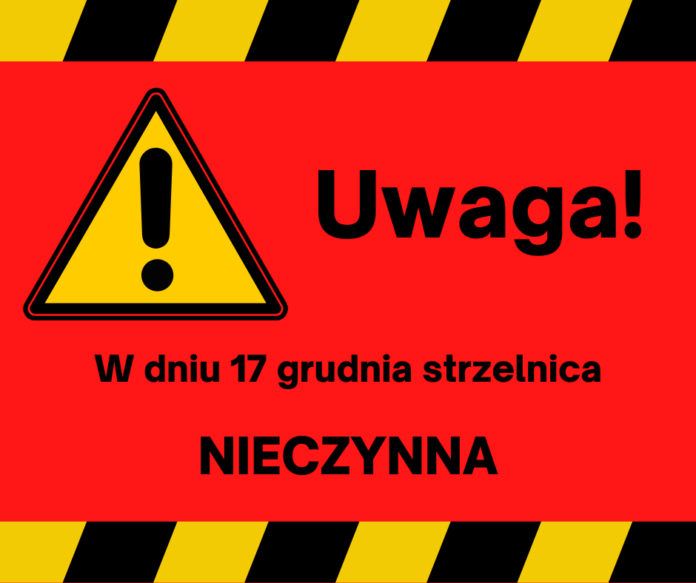 Uwaga! W dniu 17 grudnia 2022 roku strzelnica będzie nieczynna.Trening grupy objętej szkoleniem dzieci i młodzieży jest odwołany.Za utrudnienia przepraszamy.