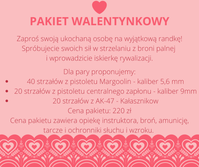 Specjalnie z okazji Walentynek przygotowaliśmy specjalny pakiet strzelań dla dwojga obejmujący: