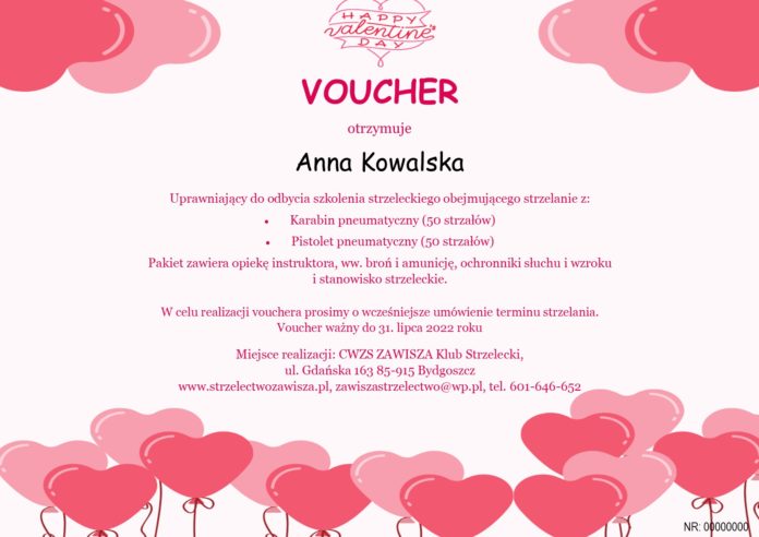 Przypominamy, że vouchery można zakupić w siedzibie klubu lub drogą mailową kontaktując się z nami pod adresem zawiszastrzelectwo@wp.pl