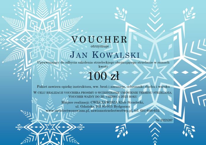 Przypominamy, że vouchery można zakupić w siedzibie klubu lub drogą mailową kontaktując się z nami pod adresem zawiszastrzelectwo@wp.pl
